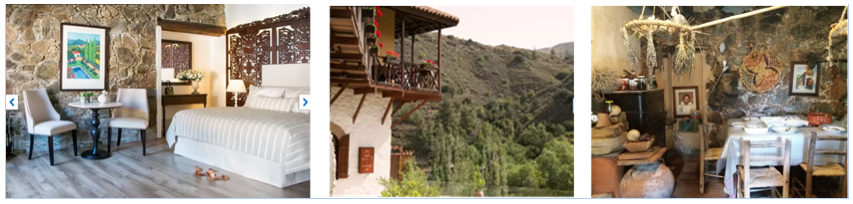 Figure 3: a, b. Kalopanayiotis village: Architectural Heritage as a touristic establishment, c.Fikardou village: restoration of an old house by Mr Farmakas A.
