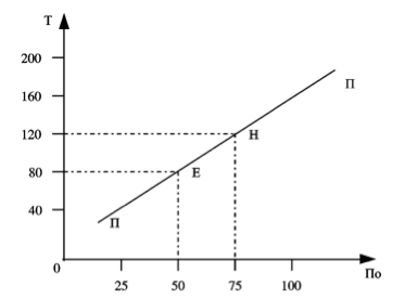 On the vertical T axis, room prices are given in euros, and on the horizontal Πο axis, the number of rooms supplied is given. In this example, point E indicates that an average price of 80 euros per room means a supply of 500 rooms. Point H indicates that an average price of 120 euros per room would mean a supply of 750 rooms. That is, a change in the price of a room also results in a change in the number of rooms, while the rest of the elements remain stable.