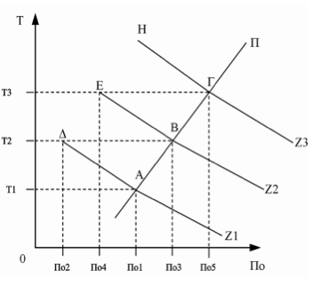 2. If there is a charge in the rooms at an increased price T2, according to the Z1 demand curve, the “purchase” of the number of rooms should be reduced to Πo2. However, based on Veblen’s Curve, this is not the case, because buyers give new meaning to the commodity-service produced, and in fact they do “purchase” a higher number of Πo3 rooms.