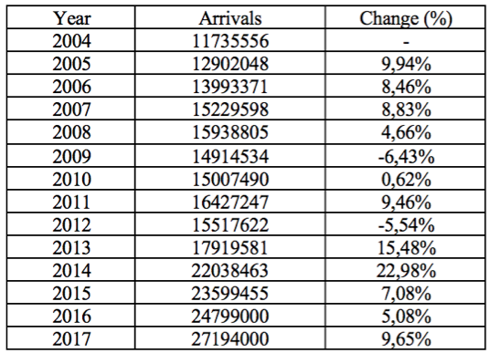 Table 1: Arrivals in Greece, (ΙΝSETE, 2018)