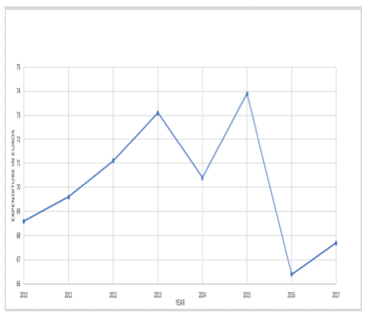 Figure 6: Evolution of the Average Daily Tourist Expenditure in Greece 2010-2017, drafted by the same