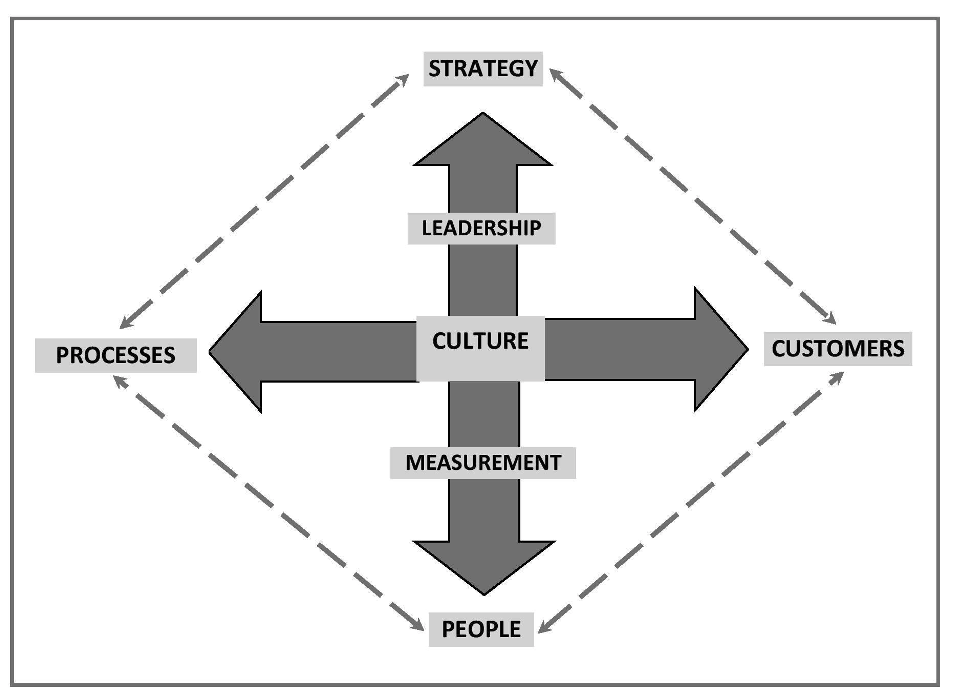 Culture plays an important role in creating team member alignment, when implementing their strategy, values and vision (Serfontein, 2009). In this case organisational culture functions in different levels: it presents a frame of reference for new and existing strategies, adopts uniform communication patterns, creates networks, and informs strategic decisions. There is the assumption that certain types of organisational culture can lead to increased organisational performance, however, this is reliant on the culture being shared and communicated throughout the entire organisation (Serfontein, 2009). Bipath (2007) states that an organisation with a strong culture will exceed those with uncertain cultures, if an organisation does not implement the correct cultural development, then it will be unable to produce positive performance and a sustainable competitive advantage. Therefore, senior managers, leaders and change agents should drive a culture transformation and create team member alignment throughout the organisation.