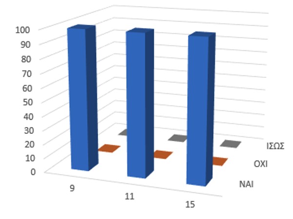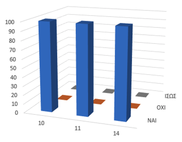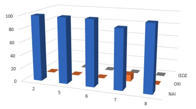 The above statement is confirmed in the very last question. Everyone responded positively on whether the service contributes to the organization of student educational visits to cultural sites within Crete.