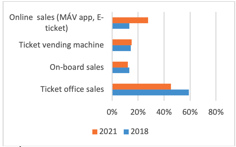 Figure 2: MÁV-START ticket sales channels in 2018 and 2021 (percent)