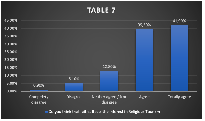 With only 18.8% answering “agree” or “totally agree” the respondents concur that the state does not effectively support the development of Religious Tourism.