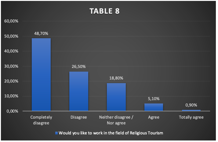 The answers of the students are of particular interest since, as shown in graph 8, the largest percentage reaching 48,7% does not wish to work in the field of Religious Tourism.