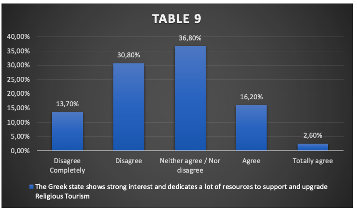 TABLE 9: Interest of the Greek state and support of Religious Tourism