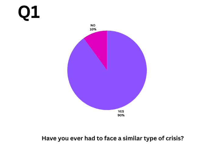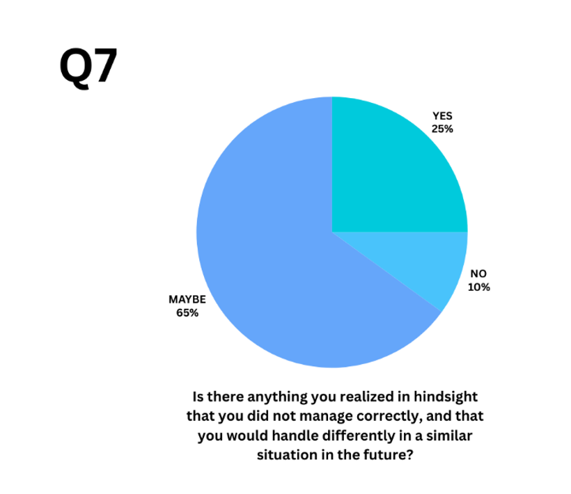 The question number seven refers to their insights on how they reacted to the crisis, whether their response was appropriate or could use some improvement. It’s important to note that more than half said that they would have probably faced it differently or better, while only 25% appeared satisfied with the way they reacted. A final 10% responded as not satisfied at all of their management of the situation.