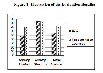 Table 3 and Figure 1 illustrate that 56% of the evaluated websites of Egypt employ the overall criteria (content & structure) stated, of which 47.5 % pursue the content criteria and 84% use the structure ones.