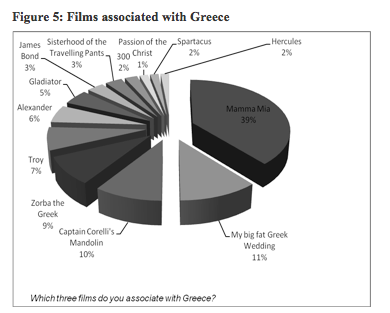 Even though clearly a large amount of films have been shot in Greece, it seems that five of these film productions have been a major boost for tourism: Never on Sunday (1960), Zorba the Greek (1964), Shirley Valentine (1989), Captain Correlli’s Mandolin (2001) and Mamma Mia! (2008). According to Libbie McQuillan - a senior analyst who conducted a research for the UK Film Council in order to find out about the biggest tourism attracting films - “no-brainer” feel-good films are the biggest tourism-attracting films (McQuillan, 2007). The five films that have had a strong impact on tourism arrivals to Greece, all seem to be feel-good or romantic films where the character of the film has a strong emotional contact with the landscape, which confirms the theory.