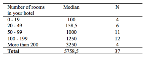 The hoteliers surveyed were able to classify the size of their hotel into 5 categories, and the median and sample size are shown in the following table (N=37). These hotels have indicated that they provide a budget for pay per click models.